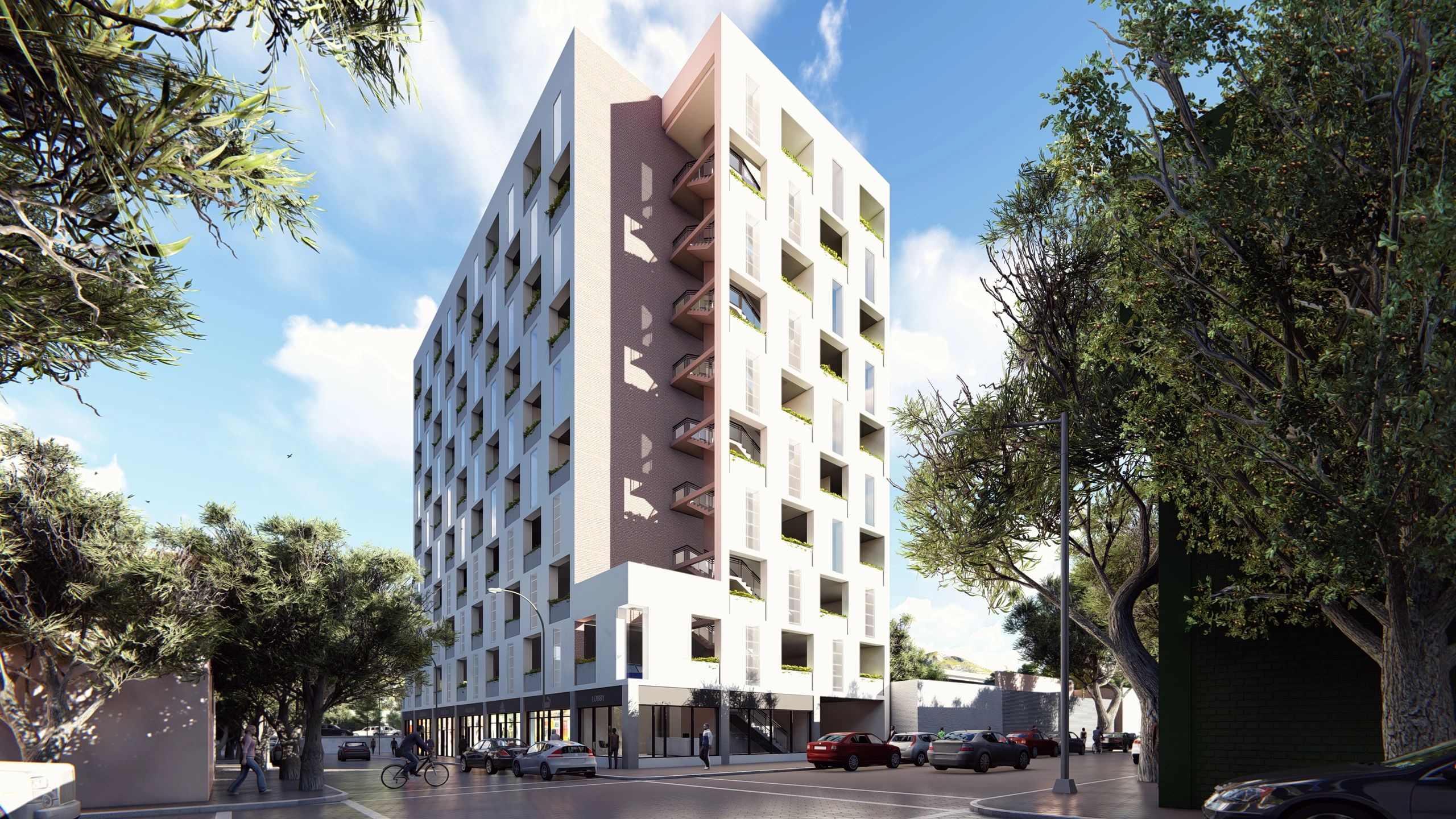Este proyecto de uso mixto se teje con vialidades existentes e integra edificios mediante espacios de convivencia. Combina vivienda multifamiliar y comercio, integrando funciones para maximizar el uso de suelo.